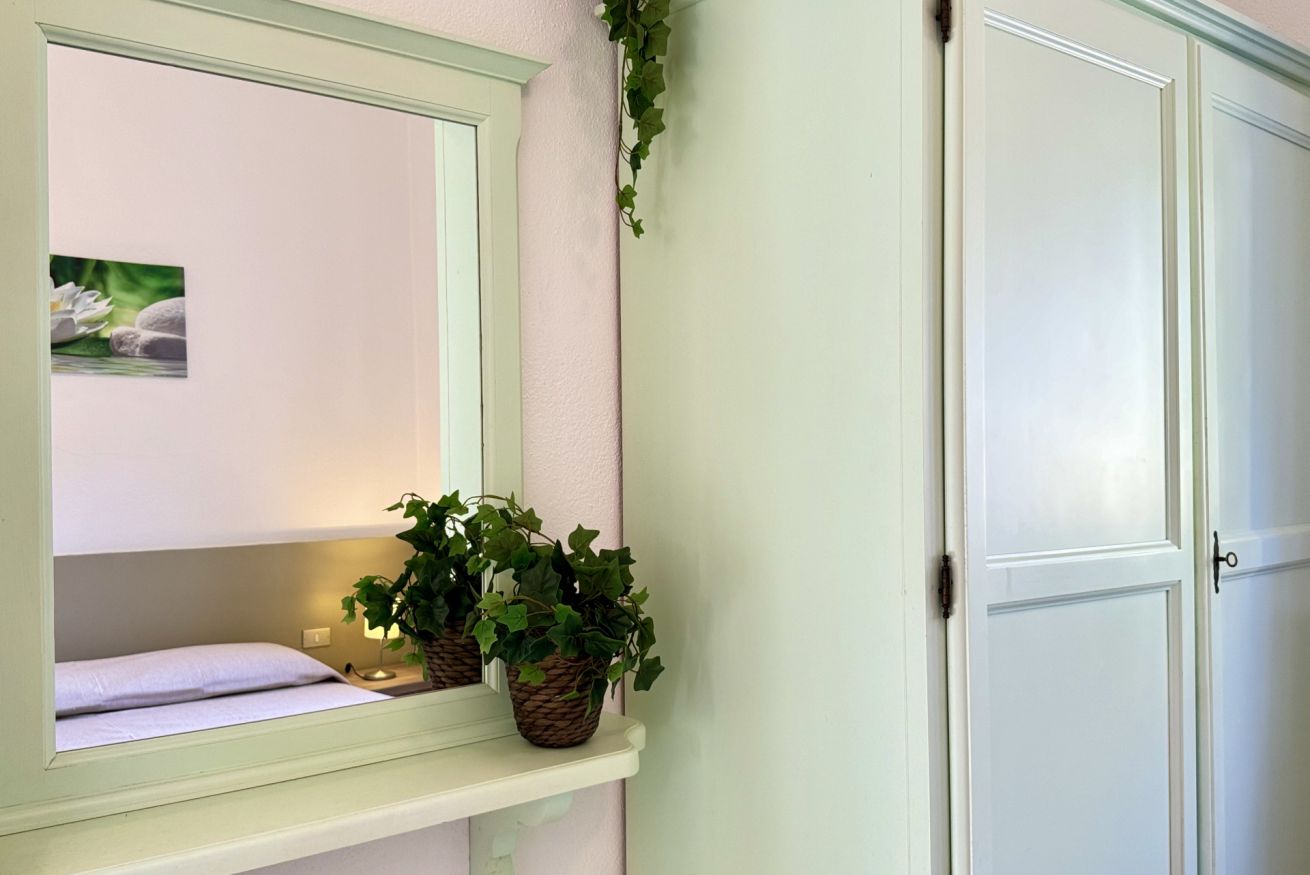 The apartment is located 150 meters from the splendid Mare Rocce Beach in a complex of independent Villas surrounded by greenery, and consists of a large living room with kitchenette, two bedrooms, a bathroom with shower, a terrace and a private parking. 10 minutes from Olbia airport and the port.